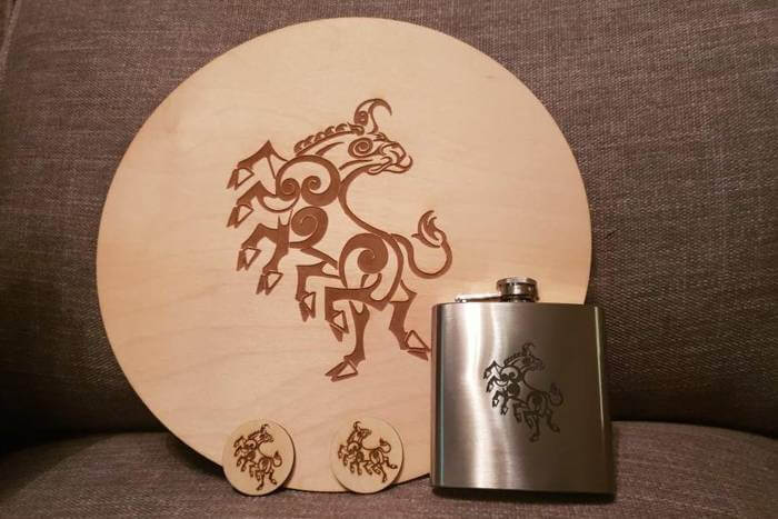 Fiona sent me a file of a wonderful Celtic bull that the Up Helly Aa Jarl Squad were decorating their shields with. Celtic artwork always looks amazing when vector engraved, especially on wood!