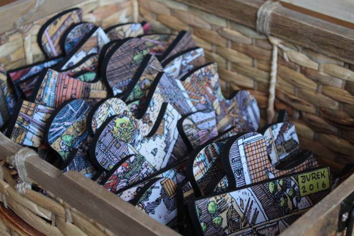 We agreed that mdf was the best material as it could be sprayed white before printing to make sure the colours popped. It would laser cut well, and the pieces would be safe to handle.